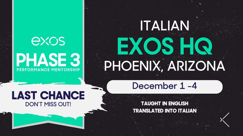 Phase 3 of the Exos Performance Mentorship builds on the comprehensive coaching and training insights gained in the initial phases, focusing on the practical application of these principles for professional and elite athlete development. This final four-day session teaches you how to craft and execute detailed, athlete-specific training programs. Learn how to develop a performance culture that fosters athletic excellence through advanced topics such as athletic profiling and exploring a mixed-method approach to developing strength and power.